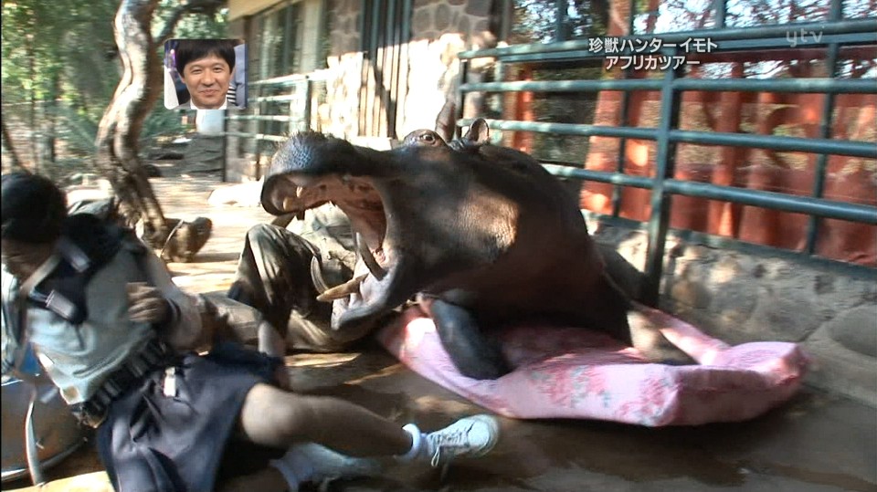 カバに左手の中指と人さし指の間をかまれ、全治1か月の大ケガをした。